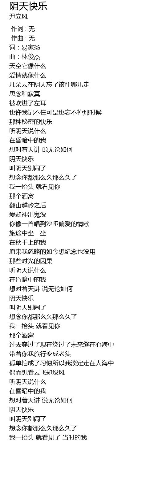 | [03:18.517] | jiào yīn tiān bié nào le |