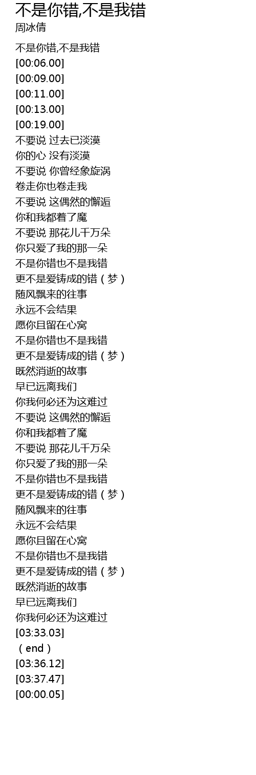 | [00:01.00] | bú shì nǐ cuò, bú shì wǒ cuò |