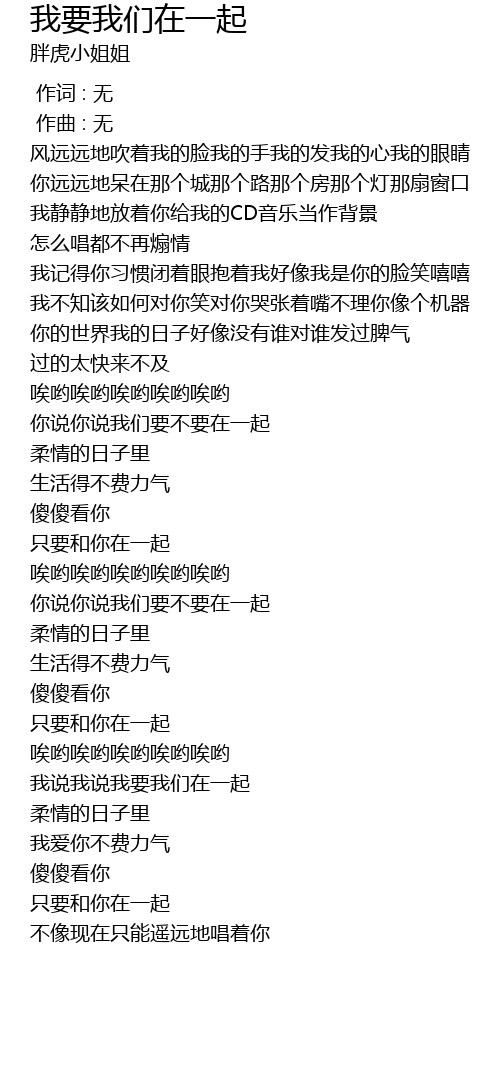| [03:26.923] | wo shuo wo shuo wo yao wo men zai yi qi |
