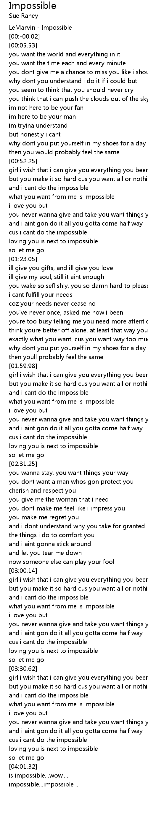 and i cant do the impossible |
