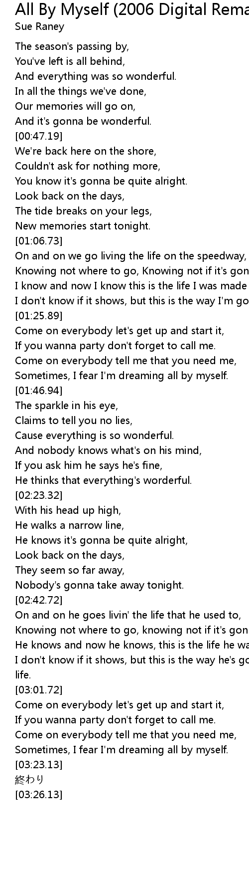 | [03:16.91] | Sometimes, I fear I'm dreaming all by myself. |