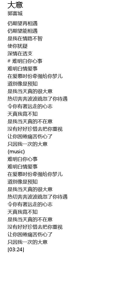| [03:16] | zhǐ yīn wǒ yī cì de dà yì |