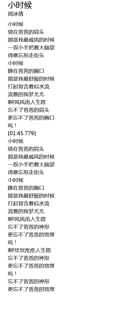 | [01:30.809] | 忘不了爸爸的肩头 |