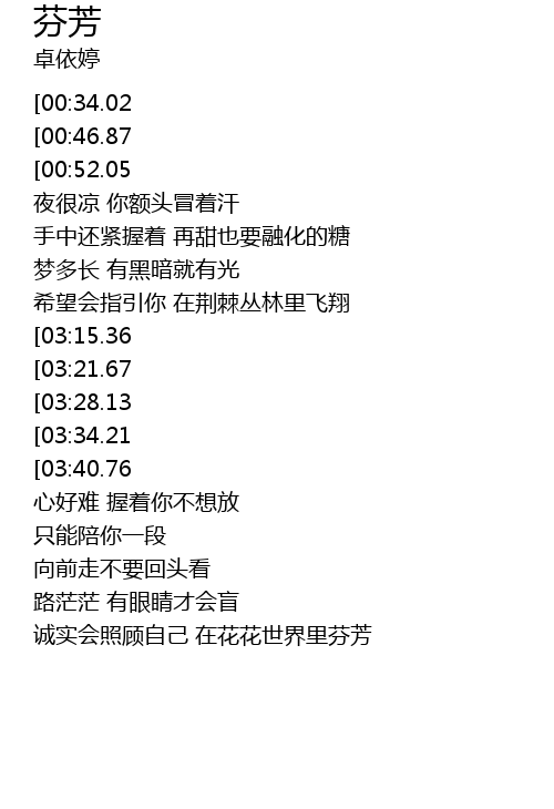 | [03:03.66] | 诚实会照顾自己 在花花世界里芬芳 |