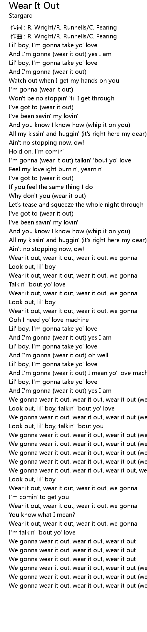 | [04:04.550] | Wear it out, wear it out, wear it out, we gonna |
