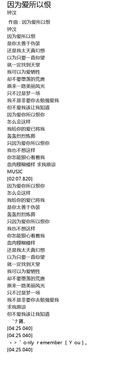 | [01:41.330] | 只因为爱你所以恨你 |