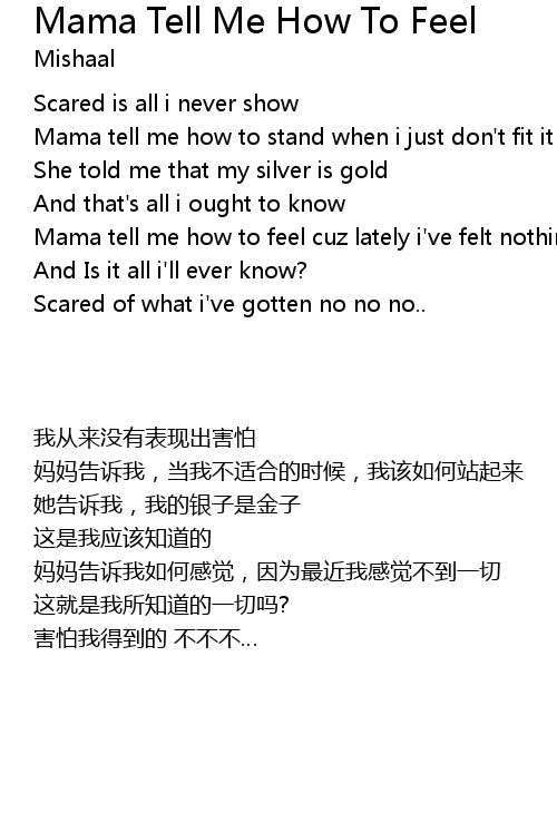 | [00:23.91] | Mama tell me how to feel cuz lately i've felt nothing |