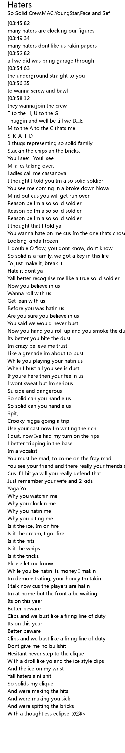 | [03:09.83] | Yall haters aint shit |