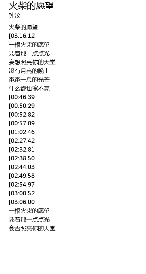| [00:00.00] | 火柴的愿望 |