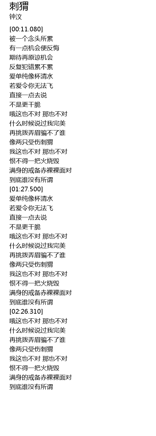 | [01:16.160] | 满身的戒备赤裸裸面对 |