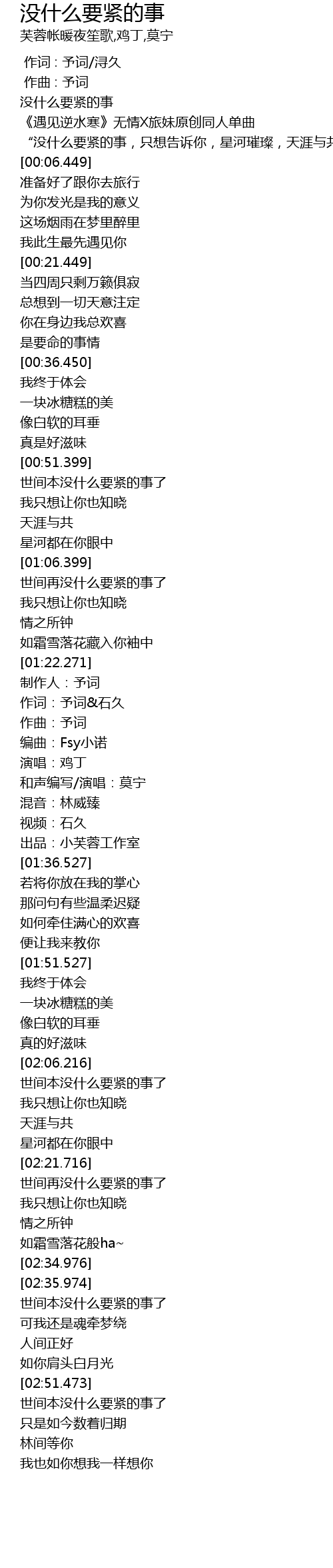 | [00:02.444] | méi shén me yào jǐn de shì |