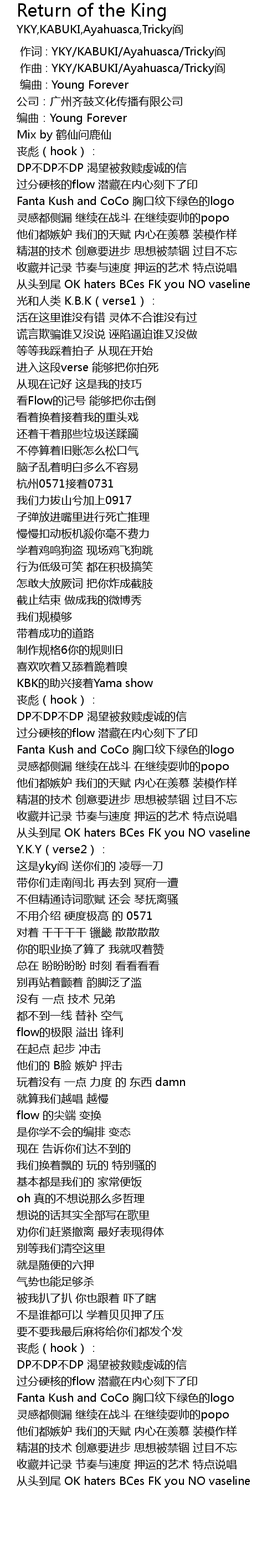 | [00:01.000] | 作曲 : YKY/KABUKI/Ayahuasca/Tricky阎 |