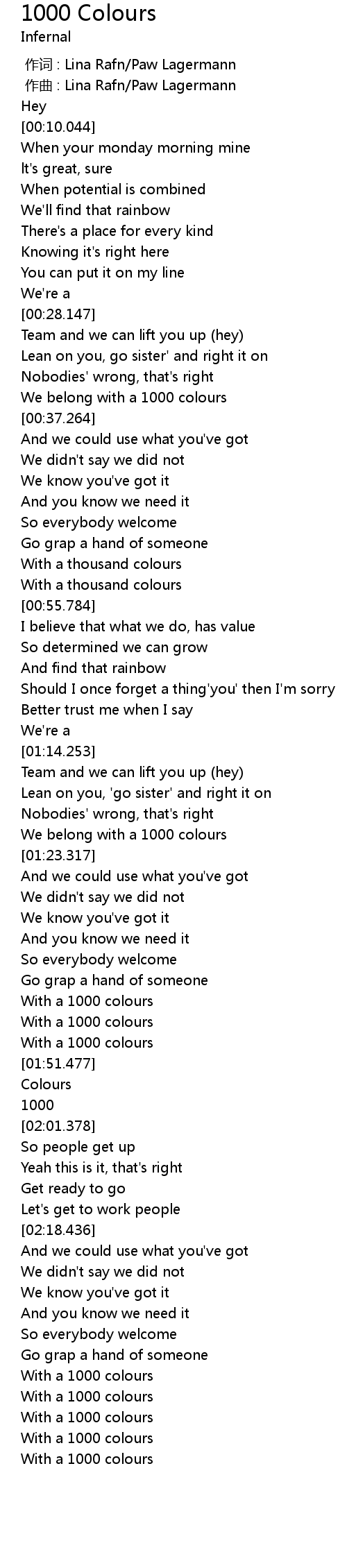 | [00:34.677] | We belong with a 1000 colours |