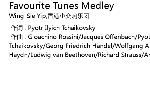 | [00:00.00-1] | zuò qǔ : Gioachino Rossini Jacques Offenbach Pyotr Ilyich Tchaikovsky Georg Friedrich H ndel Wolfgang Amadeus Mozart Franz Joseph Haydn Ludwig van Beethoven Richard Strauss Antoní n Dvoá k |