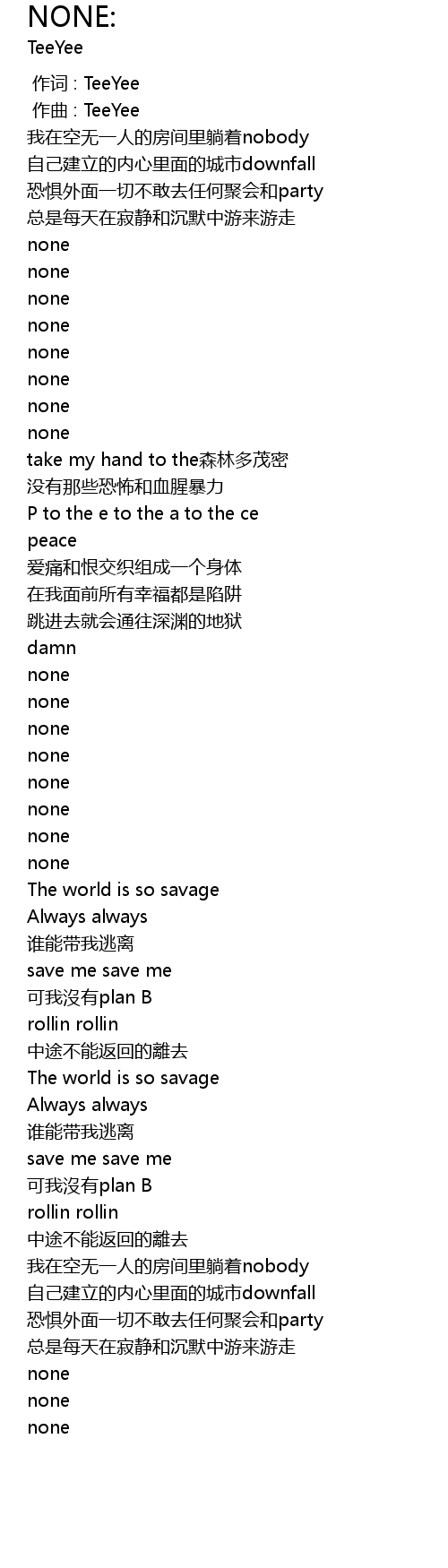 | [00:11.49] | 我在空无一人的房间里躺着nobody |