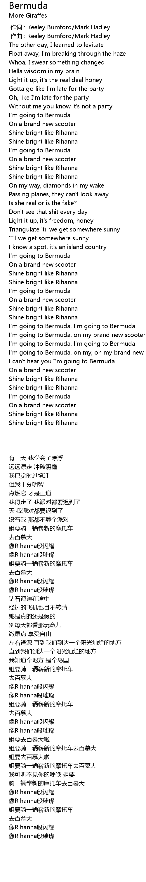 | [02:32.41] | I'm going to Bermuda, I'm going to Bermuda |