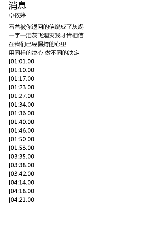 | [03:12.00][01:36.00] | 是你最后的消息 |