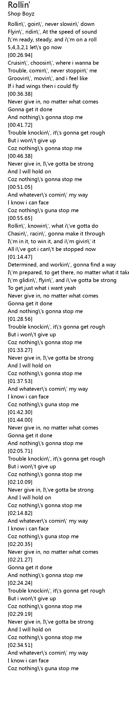 Trouble, comin\', never stoppin\' me |