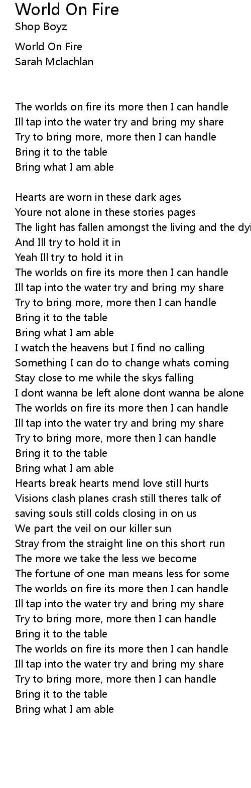 The worlds on fire its more then I can handle |