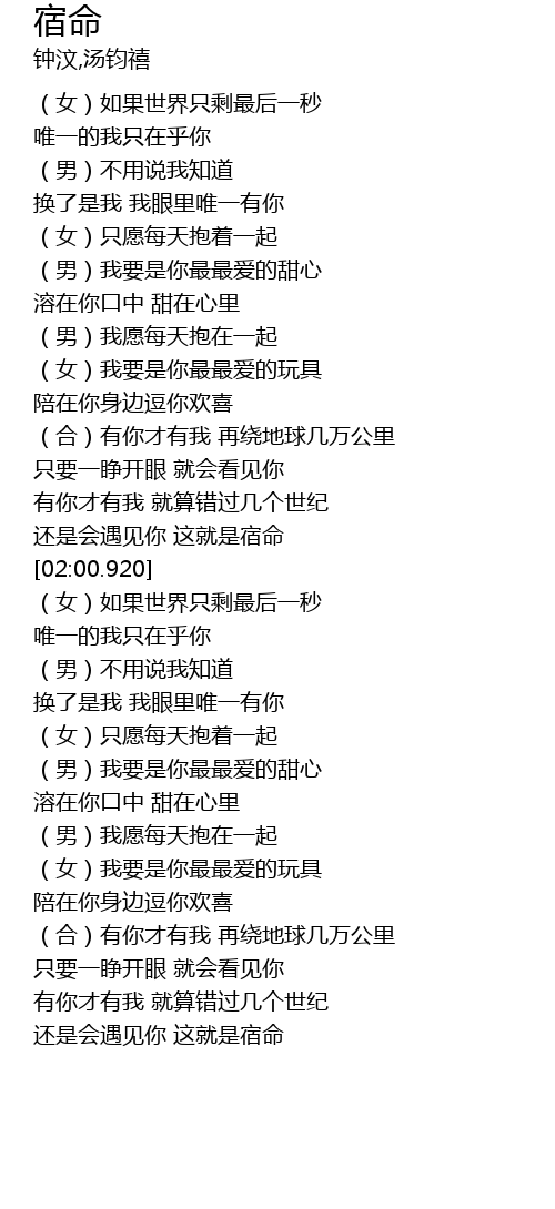 | [02:16.760] | (女)如果世界只剩最后一秒 |