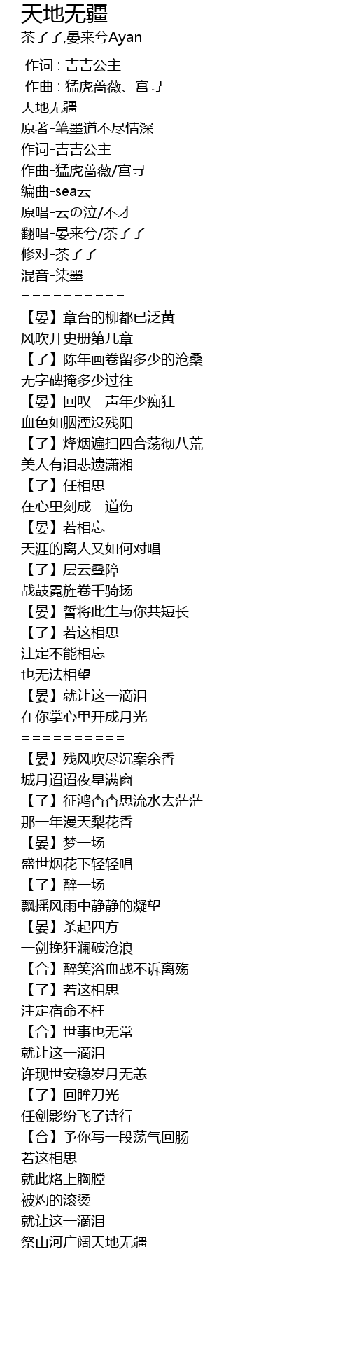 | [00:11.05] | 翻唱-晏来兮/茶了了 |