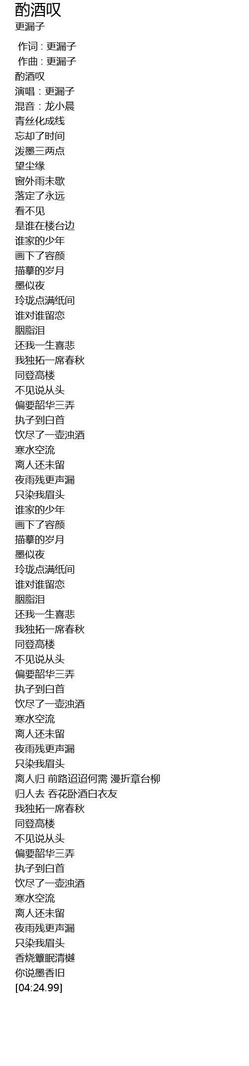 | [00:11.79] | 演唱:更漏子 |