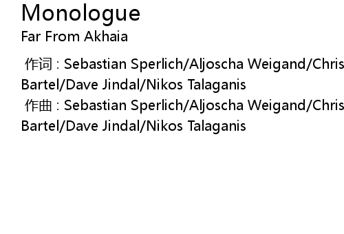 | [00:00.00-1] | 作曲 : Sebastian Sperlich/Aljoscha Weigand/Christopher Bartel/Dave Jindal/Nikos Talaganis |