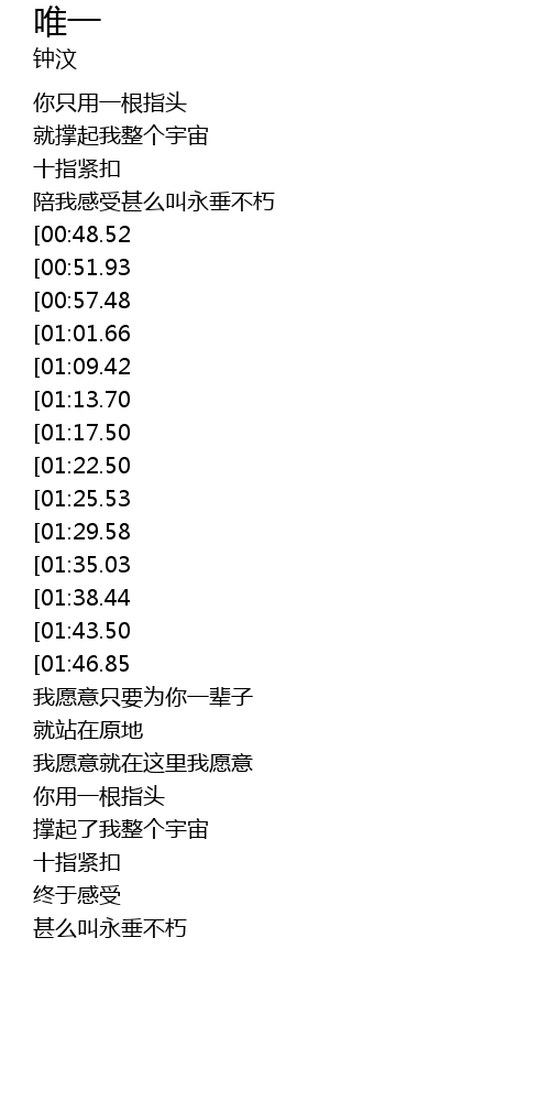 | [01:50.54] | 我愿意只要为你一辈子 |