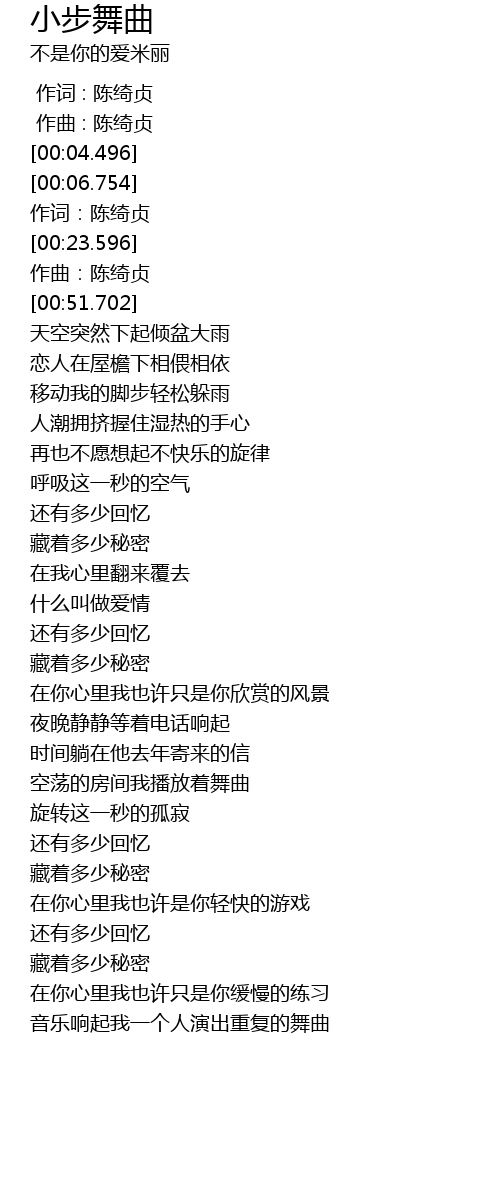 | [00:01.000] | 作曲 : 陈绮贞 |