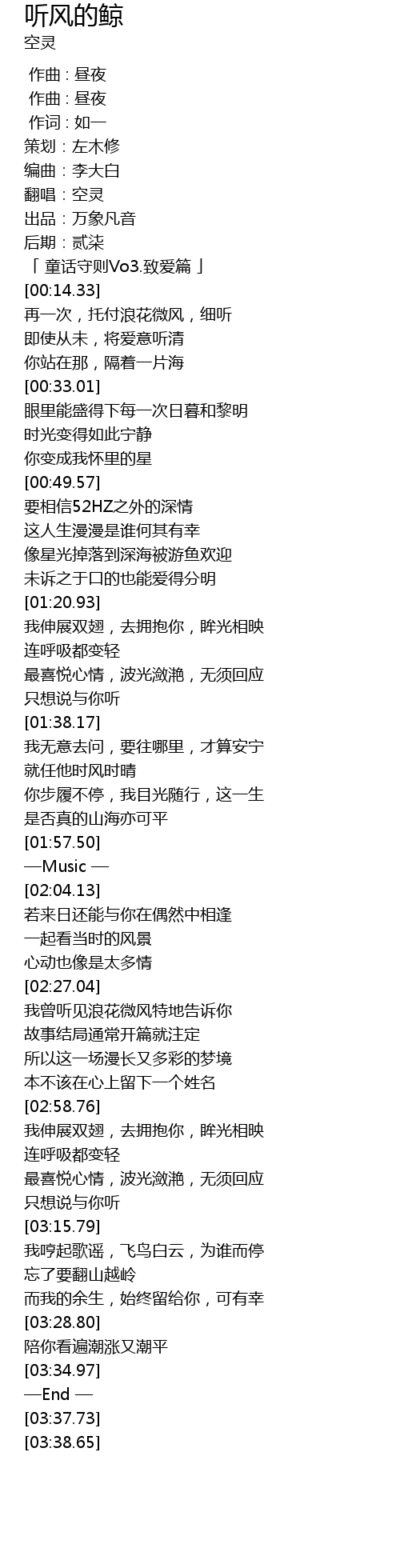 | [00:18.37] | 再一次,托付浪花微风,细听 |