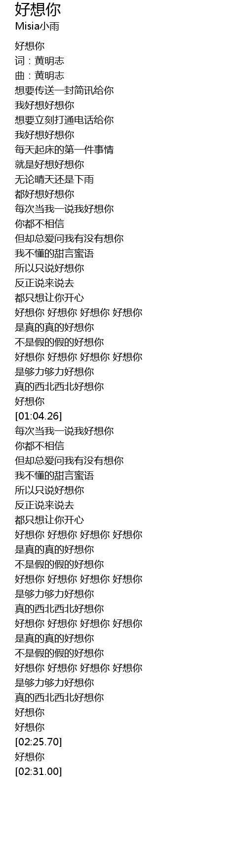 | [01:50.99] | 好想你 好想你 好想你 好想你 |