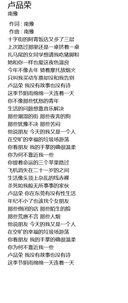 | [01:08.172] | 卢品荣 我没有故事也没有诗 |