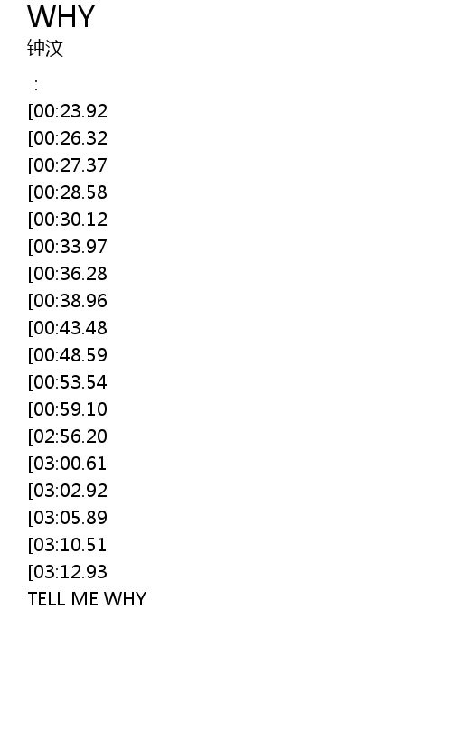 | [03:16.00][02:56.20][02:15.43][01:04.65] | WHY TELL ME WHY |