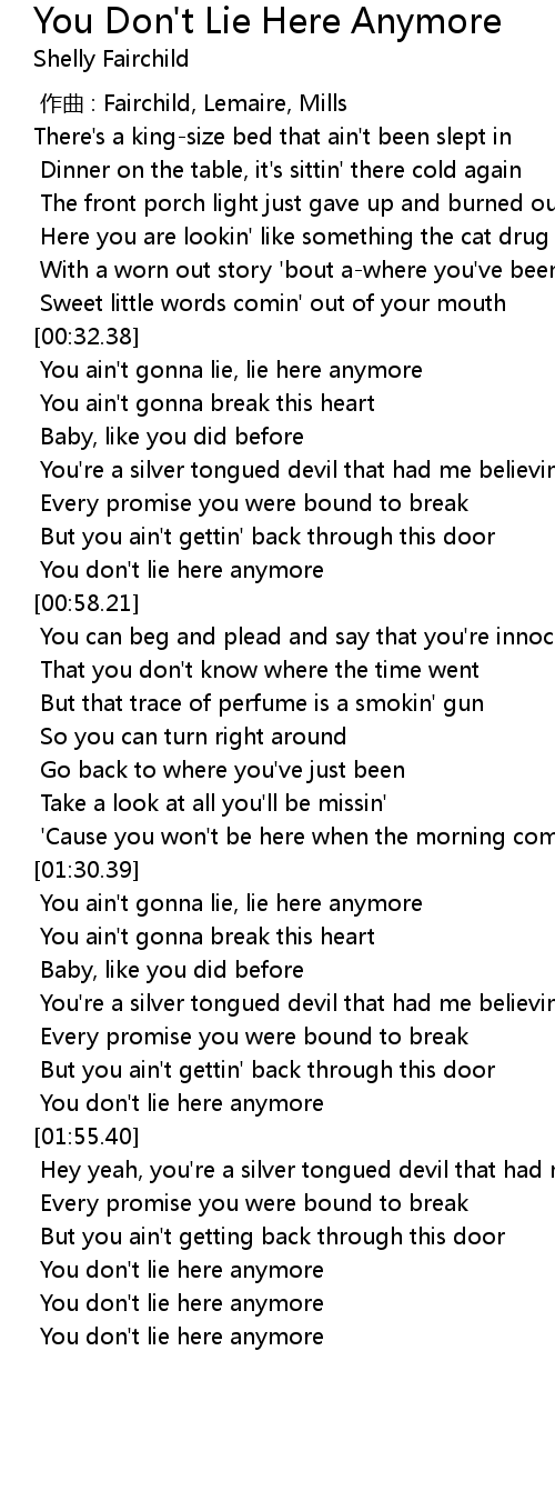 | [00:34.03] | You ain' t gonna lie, lie here anymore |
