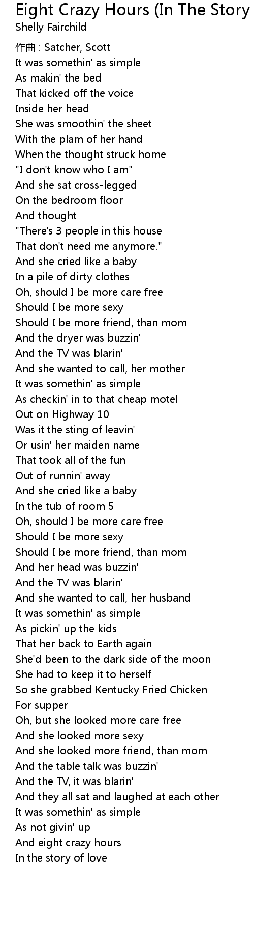 | Song | Eight Crazy Hours (In The Story Of Love) |