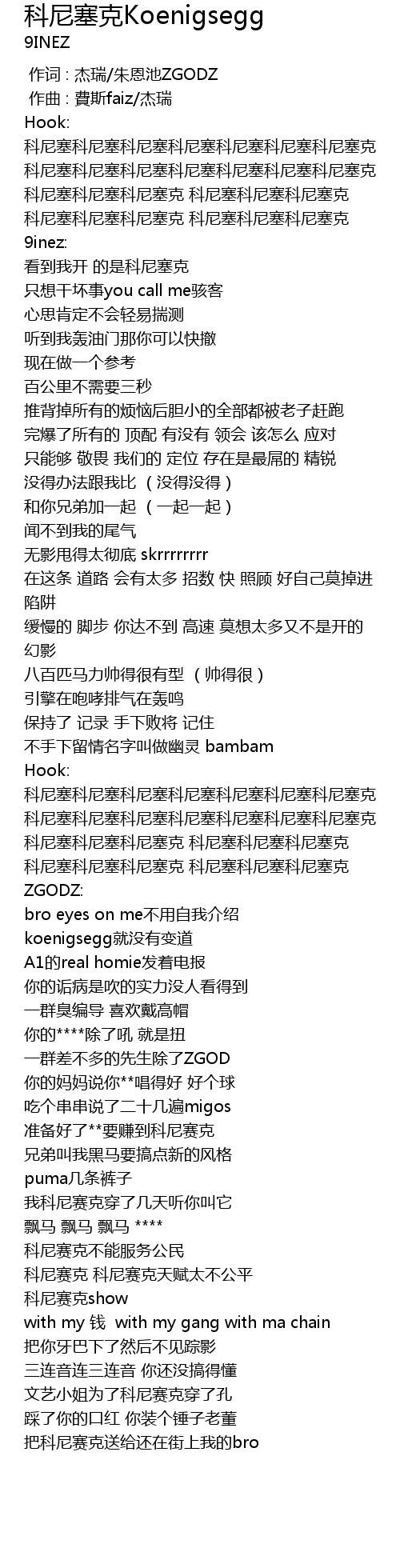 | [01:41.113] | koenigsegg jiù méi yǒu biàn dào |