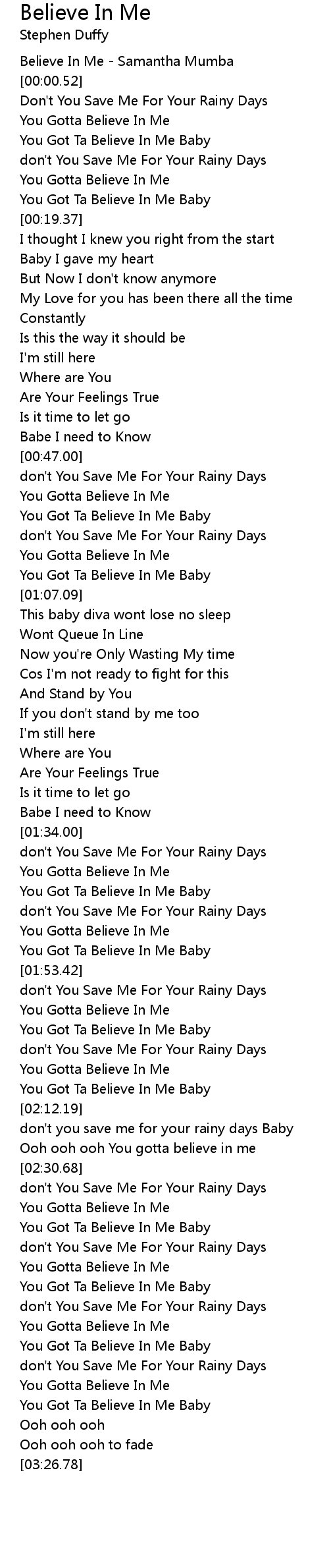 [03:05.73] You Got Ta Believe In Me Baby