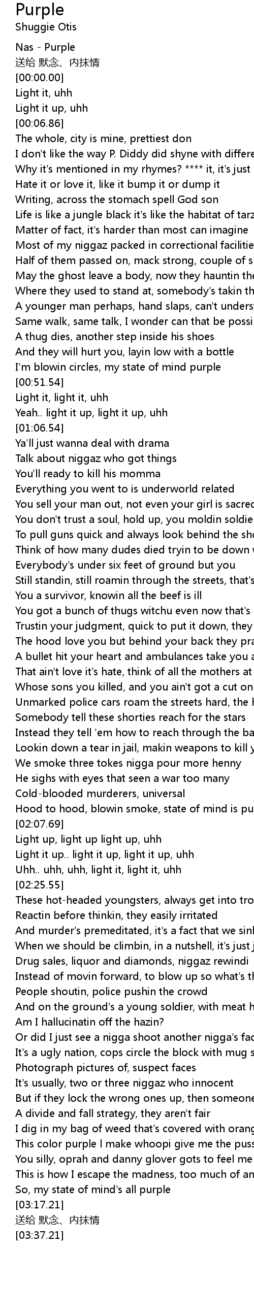 | [02:03.95] | Hood to hood, blowin smoke, state of mind is purple |