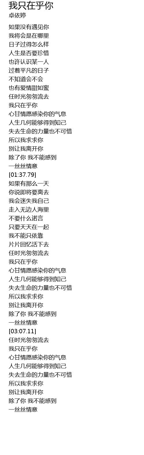 | [00:55.54] | wǒ zhī zài hū nǐ |