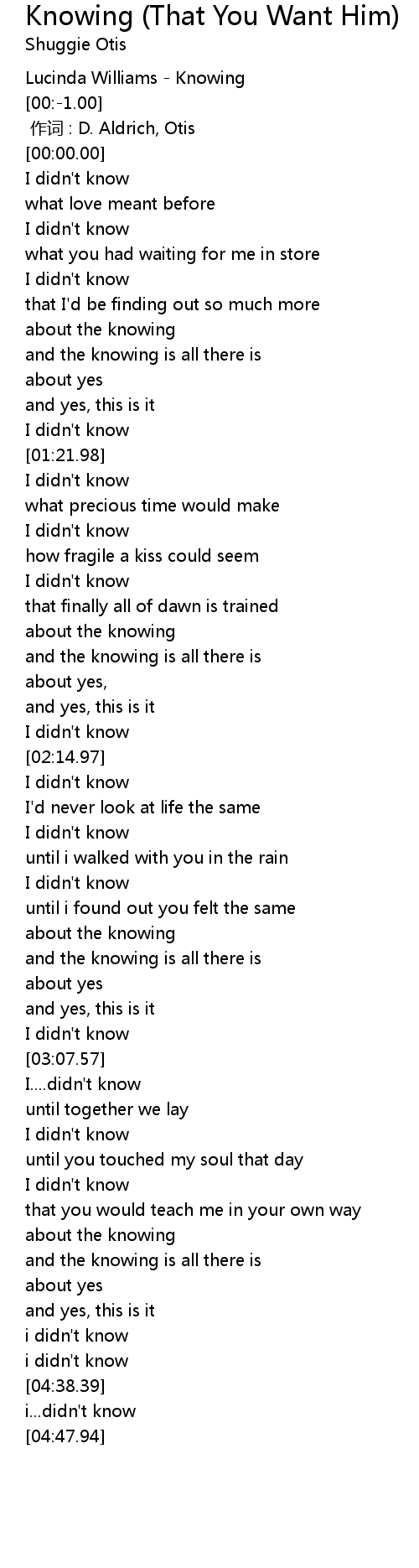 | [00:-2.00] | Lucinda Williams - Knowing |