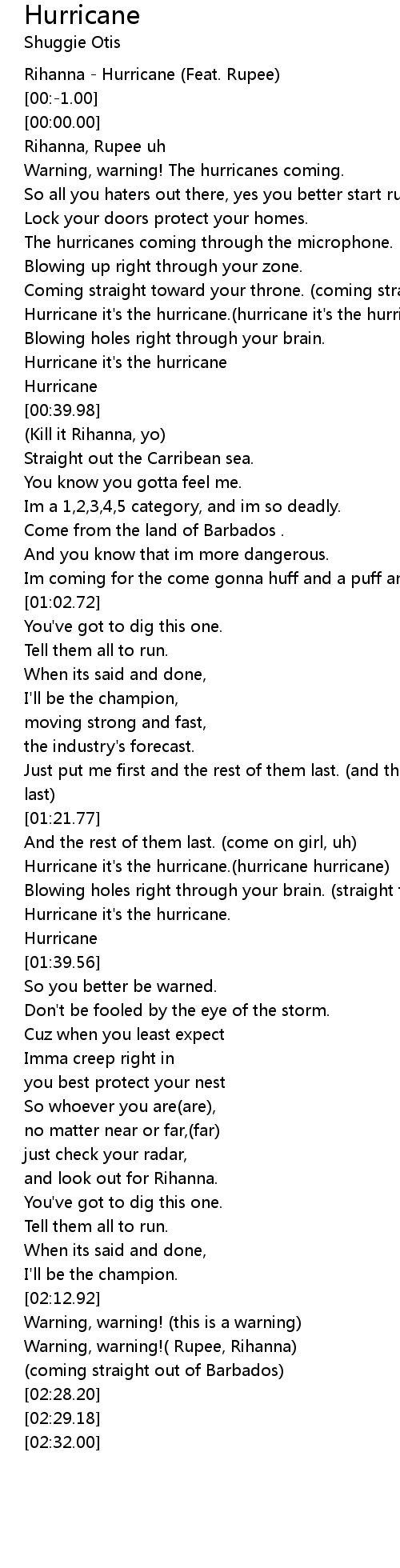 [01:25.59] Hurricane it's the hurricane.(hurricane hurricane)