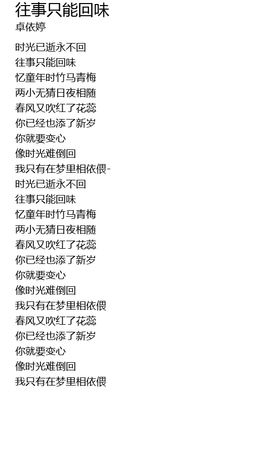 | [00:18.320] | 往事只能回味 |