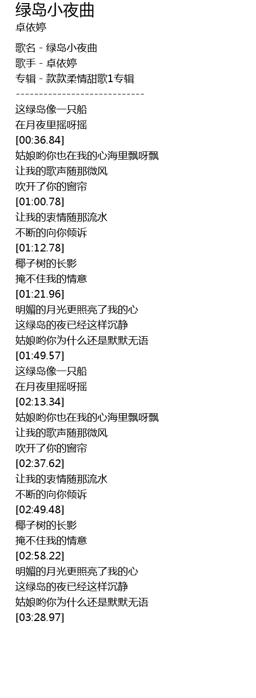 | [00:00.34] | 歌名-绿岛小夜曲 |