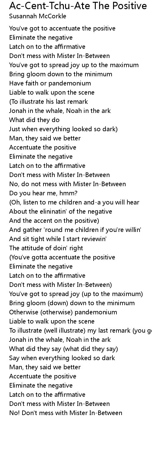 Ac-Cent-Tchu-Ate The Positive Lyrics