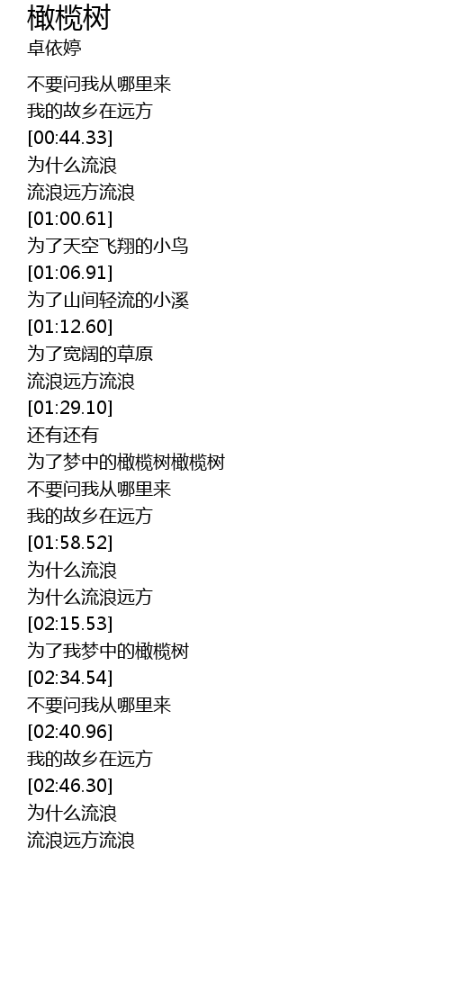 | [01:34.50] | 为了梦中的橄榄树橄榄树 |
