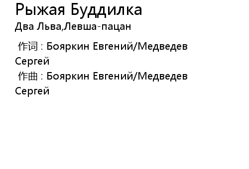 | [00:00.00-1] | 作词 : Бояркин Евгений/Медведев Сергей |