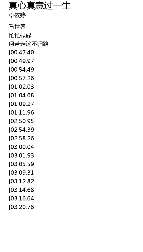 | [03:59.23][03:16.64][01:44.45] | 真心真意过一生 |