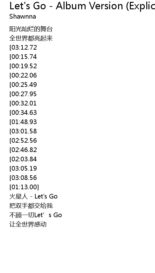 | [02:55.80][02:46.82][02:02.41][00:53.42] | Let' s Go |