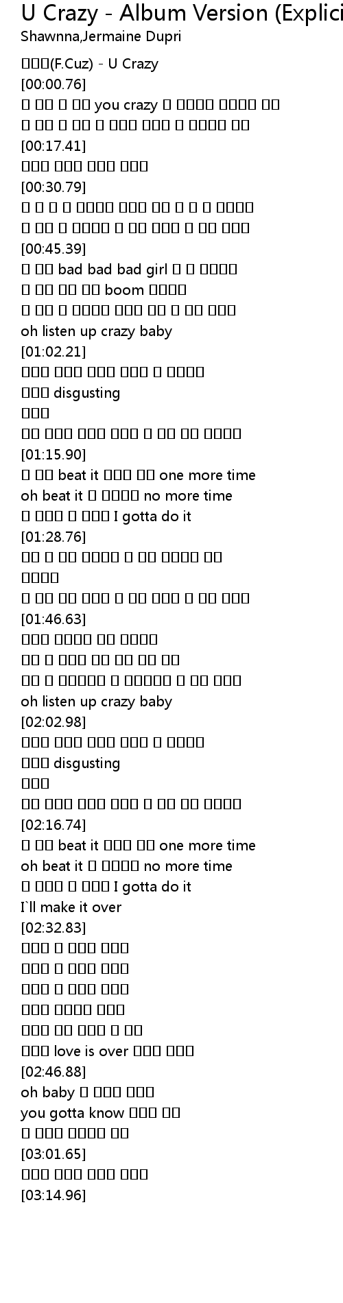 | [00:02.88] | 넌 말이 왜 그래 you crazy 또 뭐라는지 그만하지 그래 |