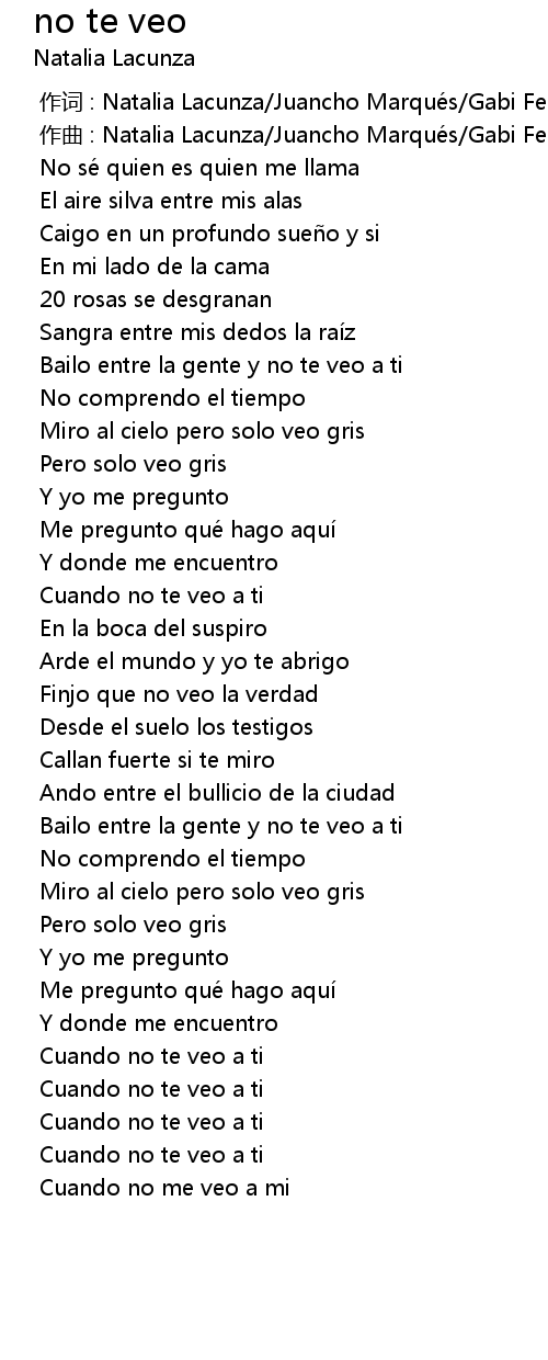 | [00:01.00] | zuò qǔ : Natalia Lacunza Juancho Marqué s Gabi Fernandez Vic Mirallas |